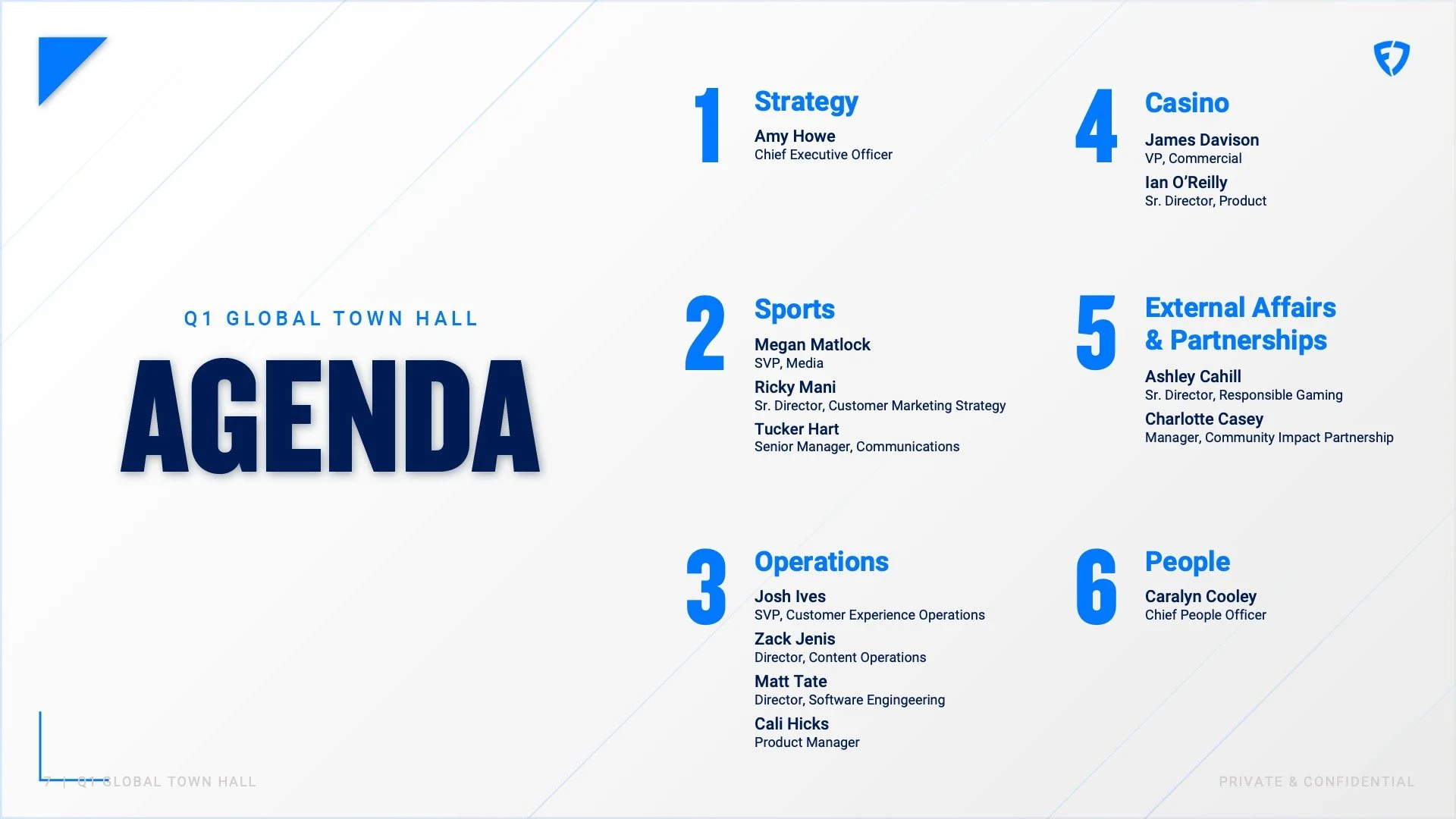 Designed the system behind FanDuel’s global town halls, shaping how leadership communicates complex business updates to a 2,000+ person audience.